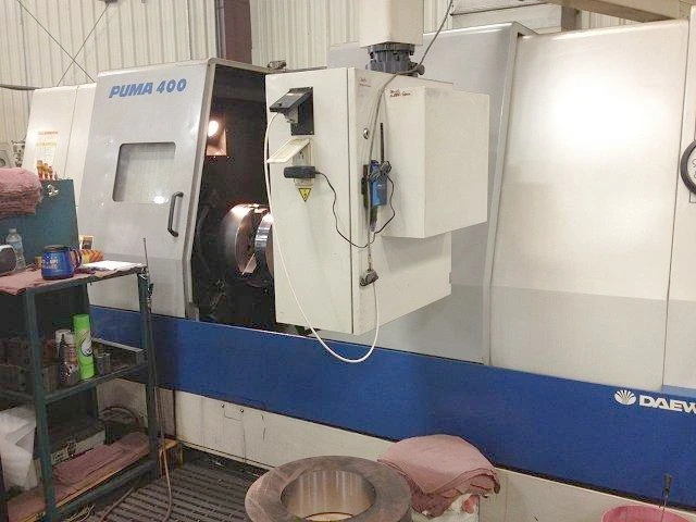 DAEWOO PUMA 400B FEATURES A FANUC 18T CONTROL, 18" 3-JAW HYDRAULIC CHUCK, TAILSTOCK AND 40" CENTERS.