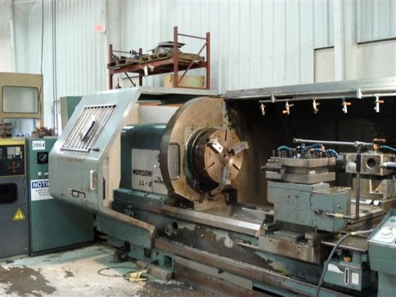 THE MORI SEIKI LL 8B X 2500 FLATBED LATHE SWINGS 50" OVER THE CARRIAGE, 100" CENTERS, 35" 4 JAW CHUCK WITH 10" HOLE AND 25" 3 JAW HYDRAULIC CHUCK PACKAGE AND FANUC 11T CONTROL.