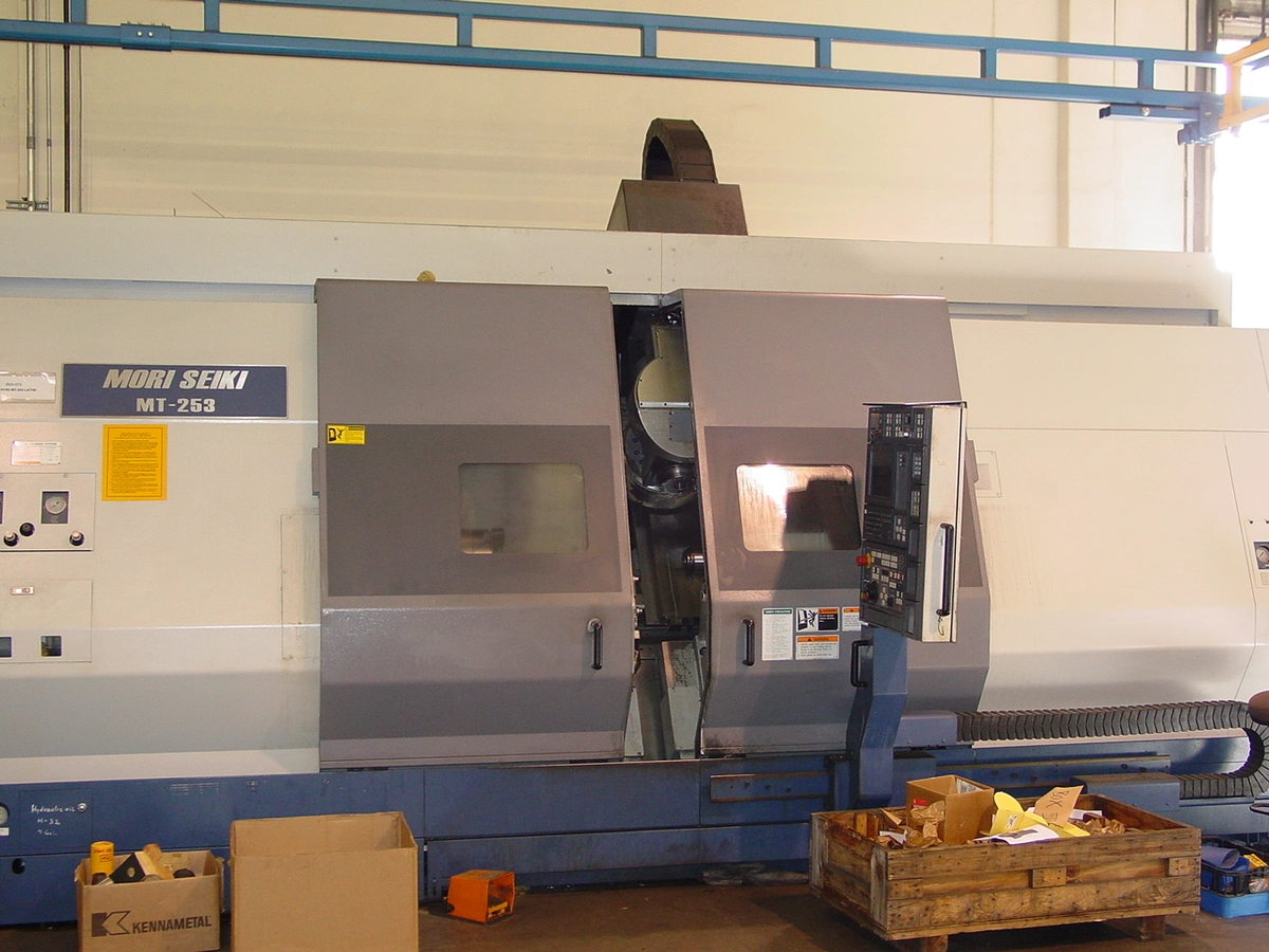 THE MORI SEIKI MT-253/1500 5-AXIS LATHE IS EQUIPPPED WITH A 10" CHUCK, Y, B & C AXIS, TAILSTOCK, FANUC 18IT CNC CONTROL, PROBE AND STEADY REST.
