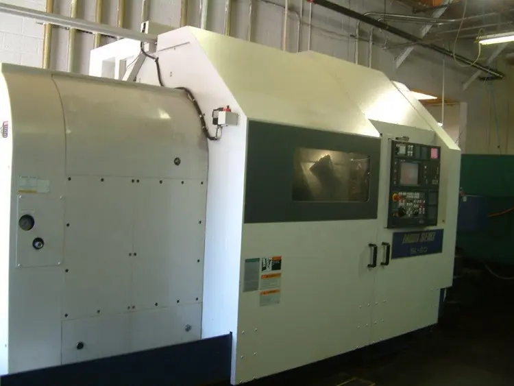 THIS MORI SEIKI SL 80F IS EQUIPPED WITH A FANUC CONTROL, 32" 4 JAW CHUCK AND AN 8.5" SPINDLE BORE.