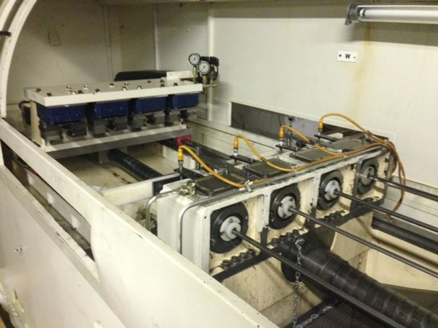 THE IXION TLW4-1200-2 GUN DRILLING MACHINE WITH SIEMENS 840D CONTROL HANDLES DRILLING DEPTHS UP TO 47.25". IT'S EQUIPPED WITH 4 SPINDLES, A PARTS CONVEYOR AND GANTRY LOAD/ UNLOAD.