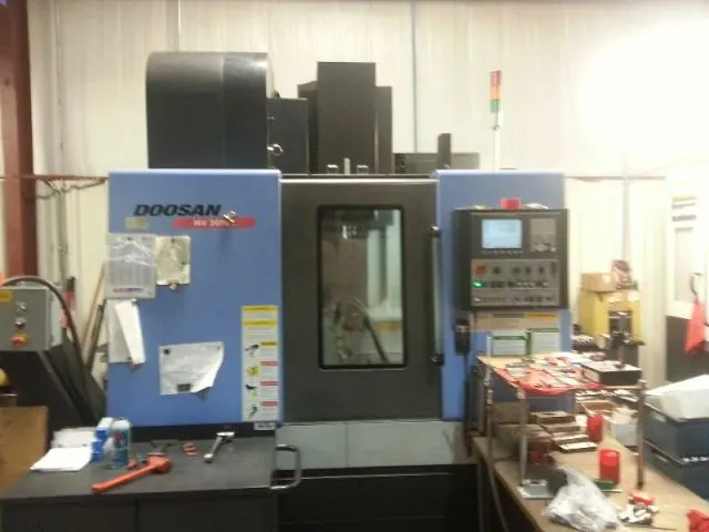 THIS DOOSAN MV 3016L CNC VERTICAL HAS A FANUC 0i-MC CONTROL, 30" X 16" X 20" TRAVELS, CAT 40 SPINDLE AND 30 ATC.