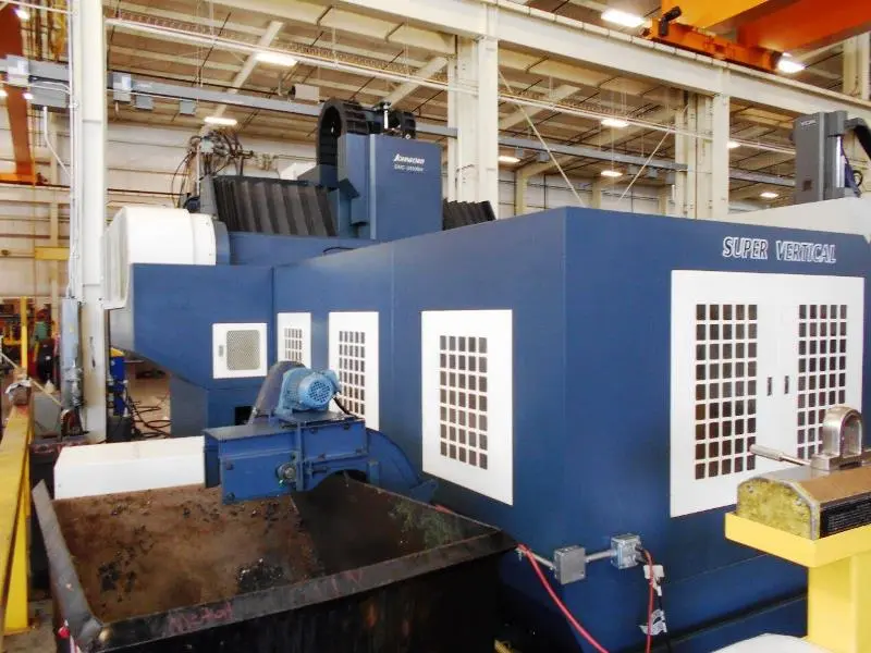 THE JOHNFORD DMC 3100SH HIGH NET CNC DOUBLE COLUMN BRIDGE MILL HAS LONG TRAVELS OF 120" X 70" X 32", A HEAVY DUTY CAT 50/ 8000 RPM SPINDLE, 40 TOOLS, BOX WAYS, 1000 PSI COOLANT THRU AND A FANUC 31i CNC CONTROL.
