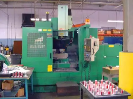 THE MATSUURA RA-IV F CNC VERTICAL MACHINING CENTER HAS A BT 40/ 15000 RPM SPINDLE WITH 213 PSI COOLANT THRU AND 2 PALLET CHANGER.