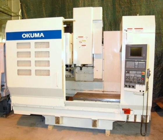 THIS OKUMA MC V4020 VERTICAL OFFERS TRAVELS OF 40" X 20" X 17", OKUMA OSP CONTROL, CAT 40/ 8000 RPM SPINDLE AND A 20 TOOL SWING ARM ATC.