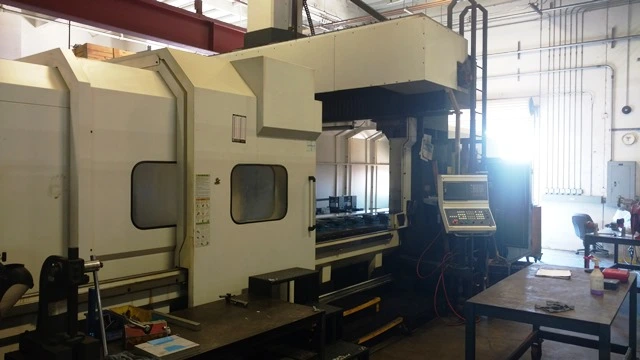 THE VIPER PRO-4210 160" X 82" X 42" BRIDGE TYPE VERTICAL MACHINING CENTER HAS AN EXTENDED Z AXIS, 300 PSI COOLANT THRU CHIPBLASTER, 40 POSITION ATC, SRC RENISHAW PROBE AND FANUC CONTROL.