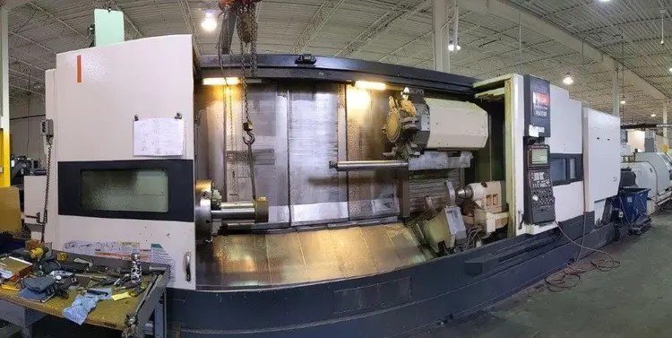 THIS CYBERTECH 4500M HAS A 120" BED, HYDRAULIC STEADY REST, LONG BORING BAR STOCKER, A 10.8" SPINDLE BORE AND MAZATROL FUSION 640MT PRO CONTROL.