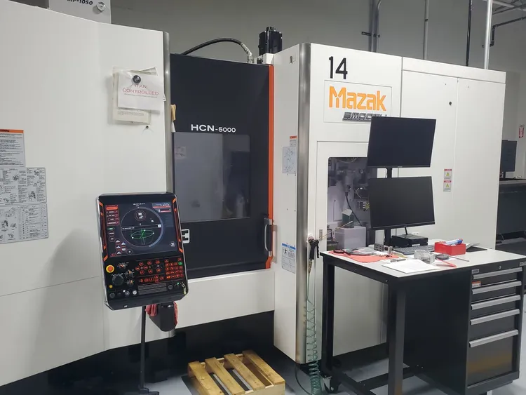 A 2018 MAZAK HCN 5000E WITH UPGRADED HIGH PERFORMANCE PACKAGE, CAT 40 BIG PLUS SPINDLE, 60 ATC, RENISHAW OMP60M PROBE, MAZAK SUPER FLOW S8 1000 PSI COOLANT THRU AND SMOOTH X CONTROL