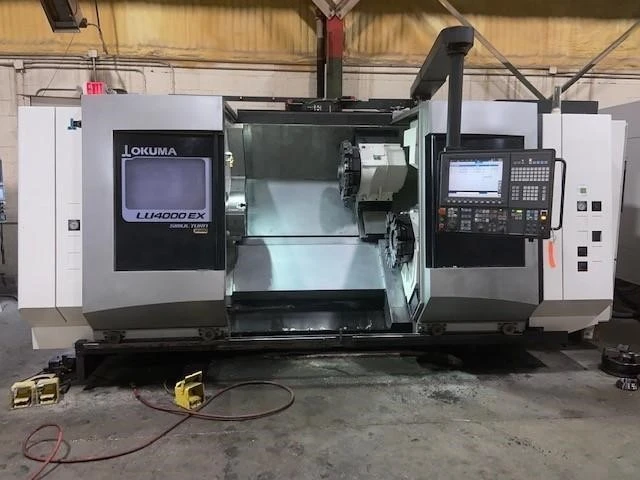 THIS 2014 OKUMA LU 4000M HAS AN UPPER AND LOWER TURRET, 15" CHUCK, 3D ANIMATION, PROGRAMMABLE TAILSTOCK, C AXIS AND OKUMA OSP 300L CONTROL.