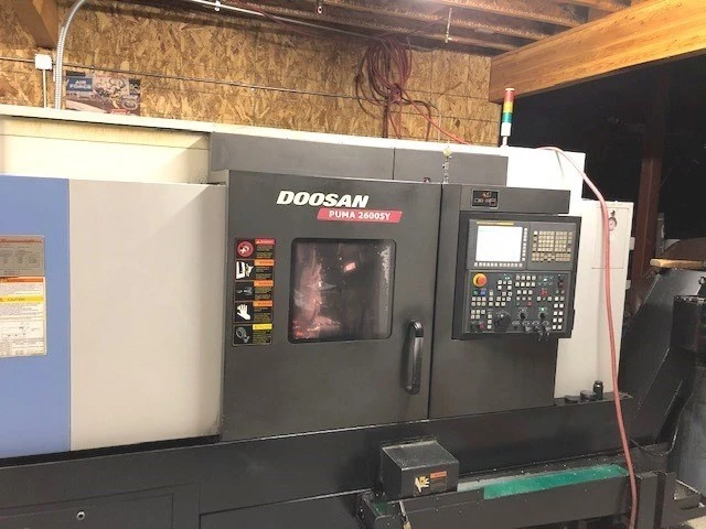 THIS PUMA 2600SY HAS A FANUC CONTROL, (2) X-AXIS ROTARY HEADS & (2) Z AXIS ROTARY HEADS, 10" 7 8" CHUCKS, BAR FEEDER AND PARTS CATCHER.