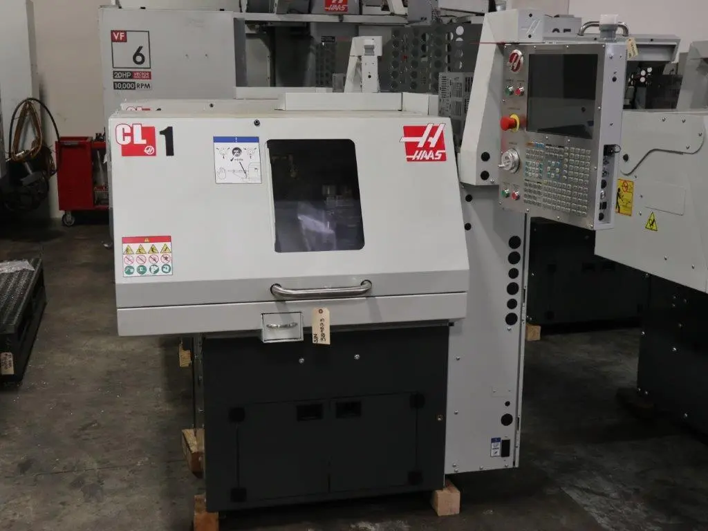 THIS 2018 HAAS CL-1 CHUCKER HAS A COLLET CHUCK WITH 1" BAR CAPACITY, C-AXIS SPINDLE, PARTS CATCHER AND COOLANT TANK.