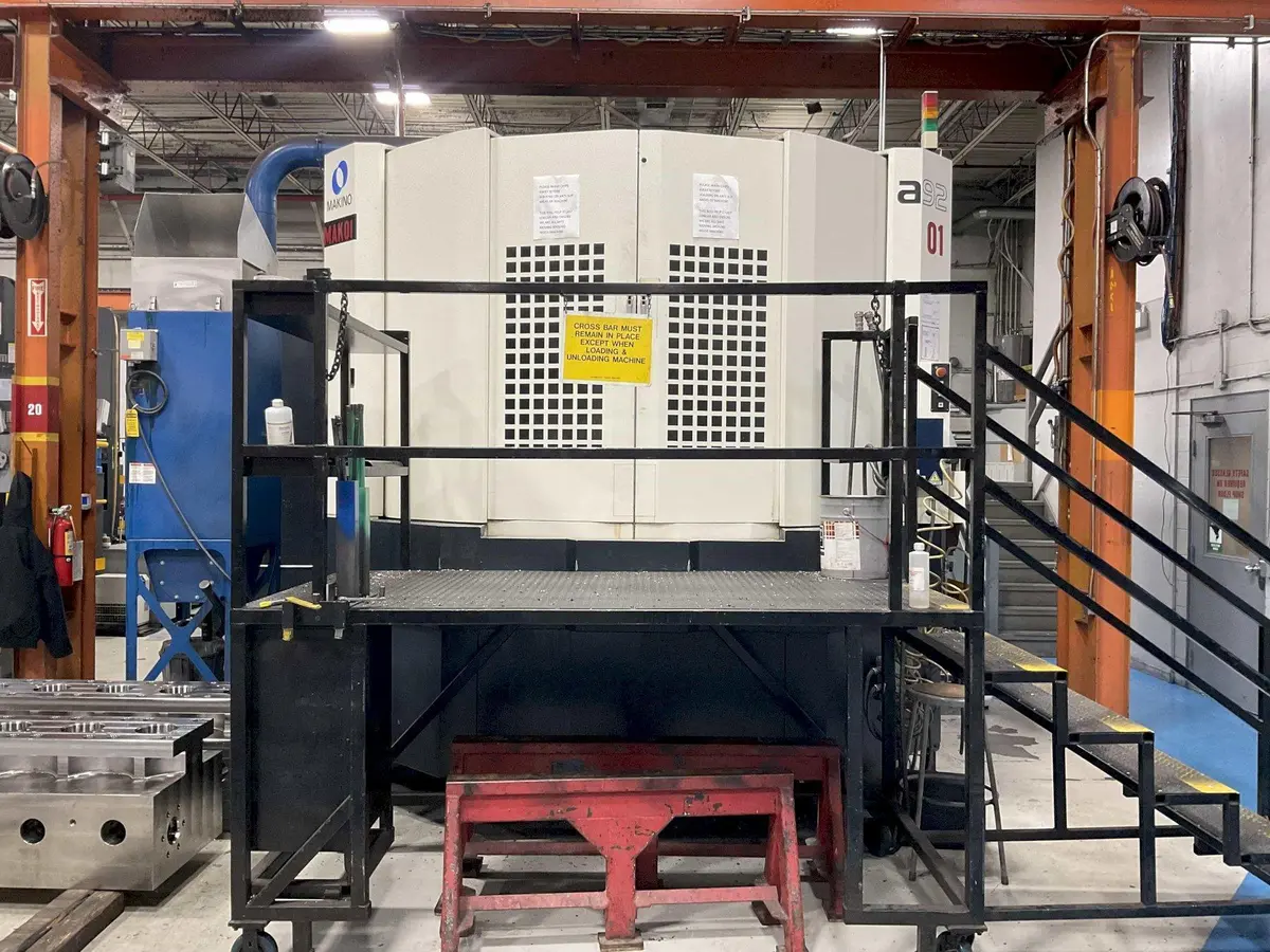 2011 MAKINO a92 HAS A MAKINO PROFESSIONAL 5 CNC CONTROL, 146 TOOL ATC, 0.001 DEGREE 4TH, COOLANT THROUGH SPINDLE, CHIP CONVEYOR, COOLANT TANK AND RENISHAW PROBING.