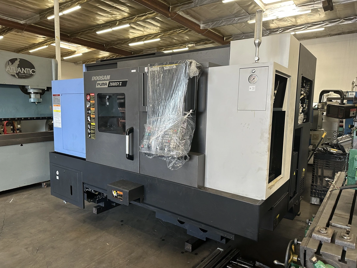 THIS 2020 DOOSAN PUMA 2600SY HAS JUST 200 CUT HOURS, 5 LIVE TOOLS, EDGE REBEL 80 SLUG LOAD, AND A TURBO REAR DISCHARGE CHIP CONVEYOR