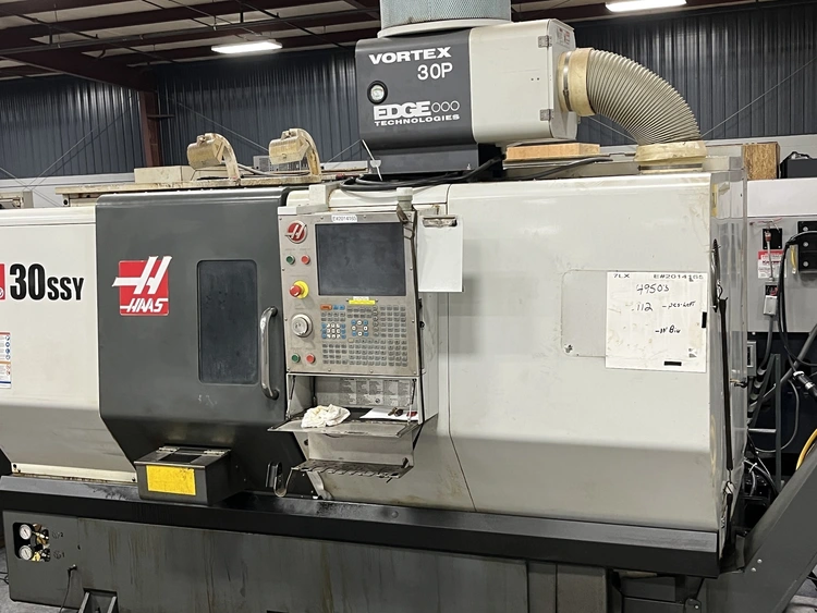 THIS HAAS DS-30SSY HAS A MAIN AND SUB-SPINDLE, EXTRA COLLETS, LIVE TOOLING WITH Y AXIS, AND C-AXIS ON BOTH SPINDLES. 4 LIVE TOOLS, 2 STATIC DRILL HOLDERS WITH 8 QUICK CHANGE HOLDERS, BAR LOADER, HP COOLANT UNIT, CHIP CONVEYOR, PARTS CATCHER, AND 1 BRAND NEW RENISHAW PROBE.
