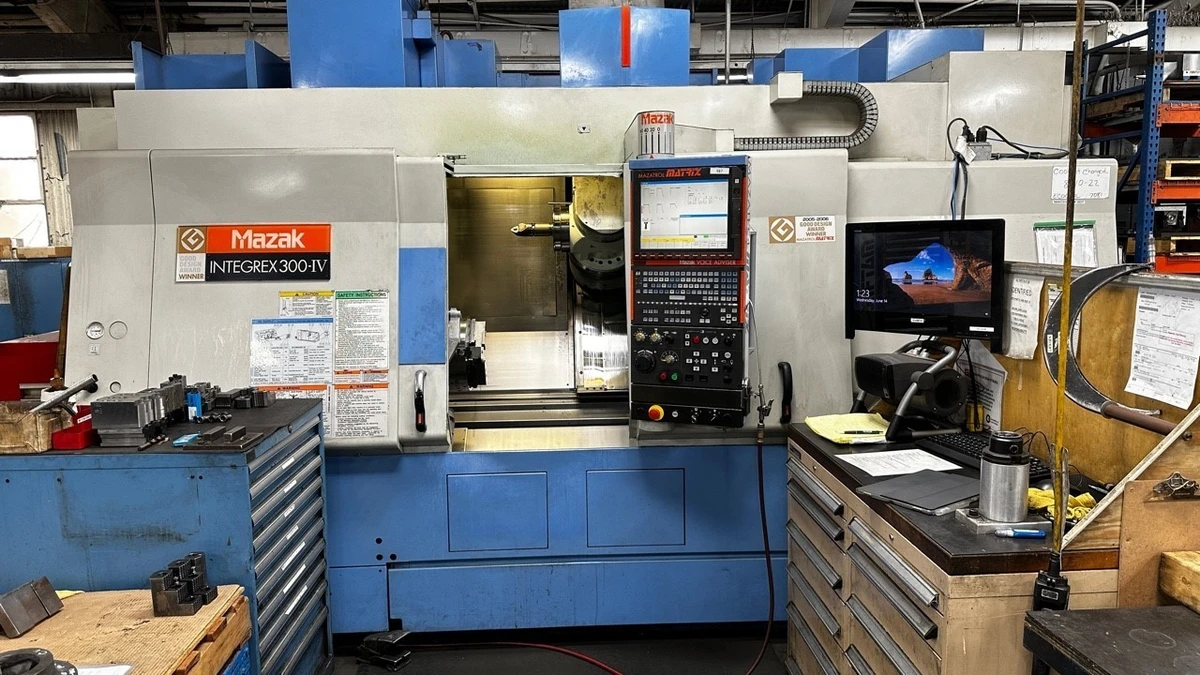 THIS INTEGREX 300IV HAS A MATRIX CONTROL, AUTOBLOK KNCS-N-325-104 3-JAW QUICK CHANGE CHUCK, 80 KM-TOOL MAGAZINE,B-AXIS INDEX 5 DEGREE (COUPLING CLAMP), PROGRAMMABLE TAILSTOCK (BUILT-IN CENTER), AND CHIP CONVEYOR SIDE DISPOSAL (HINGE) 1000U.