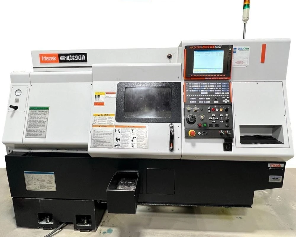 MAZAK QTN 200MY WITH MATRIX CONTROL, LNS BAR FEEDER, PROGRAMMABLE TAILSTOCK, PARTS CATCHER AND CHIP CONVEYOR.