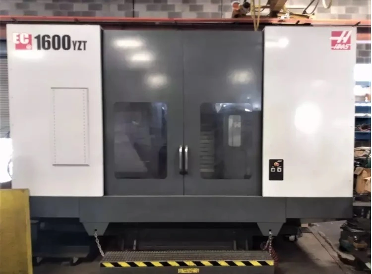 2014 HAAS E-1600YZT WITH ROTARY TABLE (HRT 600), 300 PSI CTS, RENISHAW INTUITIVE PROBING SYSTEM, 50 POSITION ATC, RIGID TAPPING AND CHIP CONVEYOR.