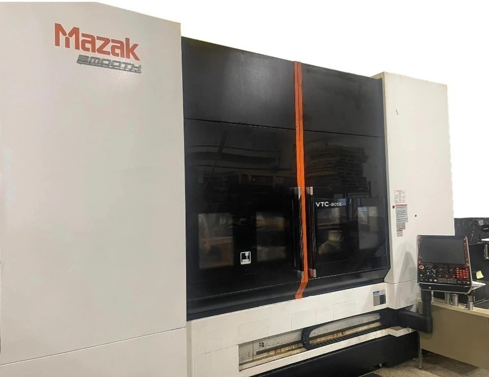 For sale: MAZAK VTC-805E, 2016 - robust vertical machining center with 69.3" X, 32.3" Y, 28.3" Z travel, 6000 rpm spindle, 40 ATC, and advanced probing features. Used, well-maintained.