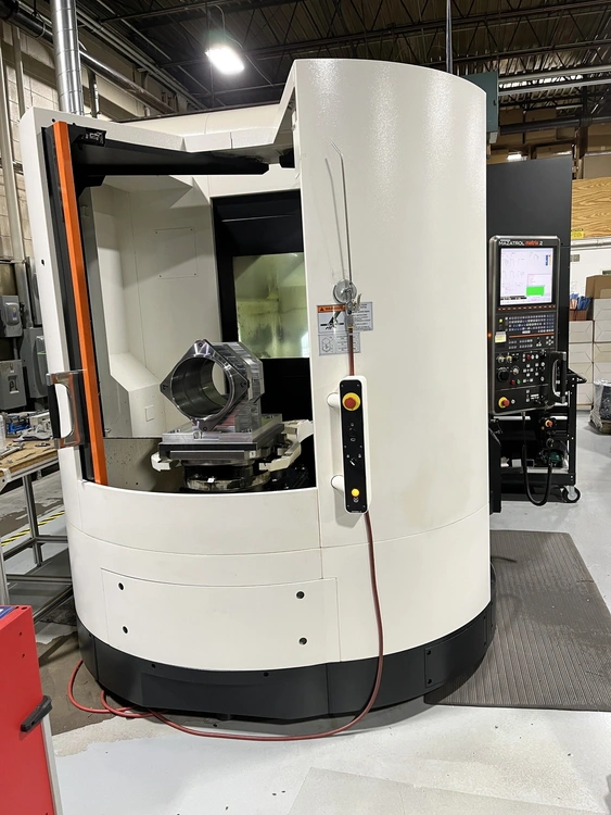 2013 MAZAK VARIAXIS I-600 5-AXIS VERTICAL CNC MACHINING CENTER, TSC, 1000 PSI SUPERFLOW T8 HIGH-PRESSURE COOLANT, DUAL-PALLETS, 120 ATC, RENISHAW RMP600 PROBE, CHIP CONVEYOR.