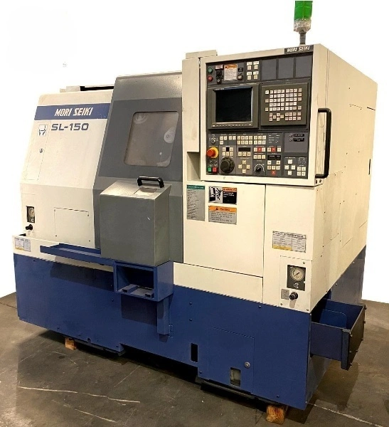 MORI SEIKI SL-150SMC WITH A FANUC MSC 518 CONTROL, COLLETS CHUCKS ON BOTH SPINDLES, 12 STATION LIVE TOOL TURRET WITH TOOL HOLDERS, 2-STEP GEAR SPINDLE AND CHIP CONVEYOR.