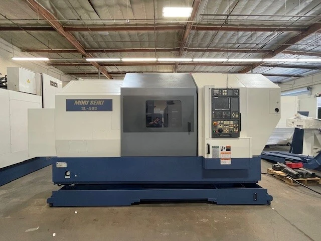 THIS MORI SEIKI SL-403CMC/ 800 HAS AN 18" CHUCK, 7.3" HOLE THRU SPINDLE, CHIP CONVEYOR AND TAILSTOCK