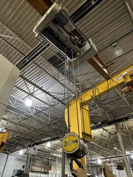 3 TON X 15’ ARM X 15' HIGH RELIABLE 360° FREE STANDING JIB CRANE & 3 TON DETROIT CABLE HOIST: