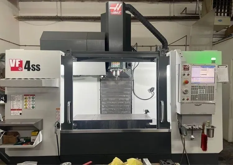 For sale: 2021 HAAS VF-4SS Vertical Machining Center. Features include X/Y/Z travels of 50"/20"/25", 12000 rpm spindle speed, 30-tool capacity, and 30 hp main spindle motor. Table measures 19.5"W x 52"L. CAT 40 spindle. Used condition.