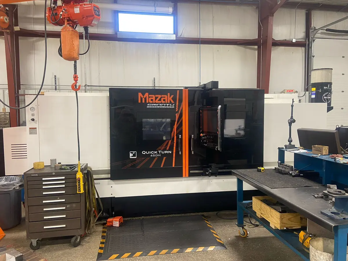 Explore precision with the 2022 MAZAK QT 450M CNC Lathe. Offering a 33.27" swing, 80.4" cutting length, and SmoothX control, this multi-axis lathe is equipped with a chip conveyor, live tools, and various holders. Perfect for advanced machining needs.