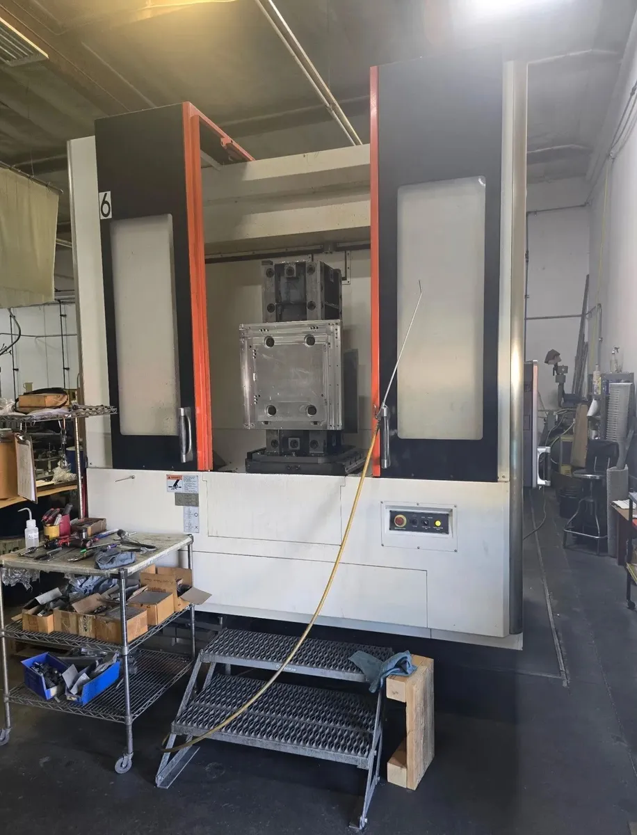 MAZAK HCN 6800-II from 2014 offers a 4-axis horizontal machining center with 41.34" X, 35.43" Y, and 38.58" Z travel. Features CAT 50 spindle, 50 hp, 8000 rpm, 120 tool capacity, dual pallets, MAZATROL control, and more, ideal for precision and efficiency. Includes 70+ toolholders.