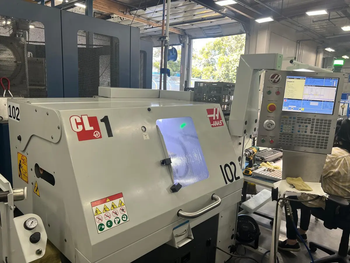 2018 HAAS CL-1 CNC lathe, used but in great condition, ready to move. Features 11" swing, 4" chuck, and 6000 RPM/5 HP spindle. Equipped with HAAS CNC control, barfeeder, and more. Efficient gang-style tooling ensures high productivity. Priced to sell.