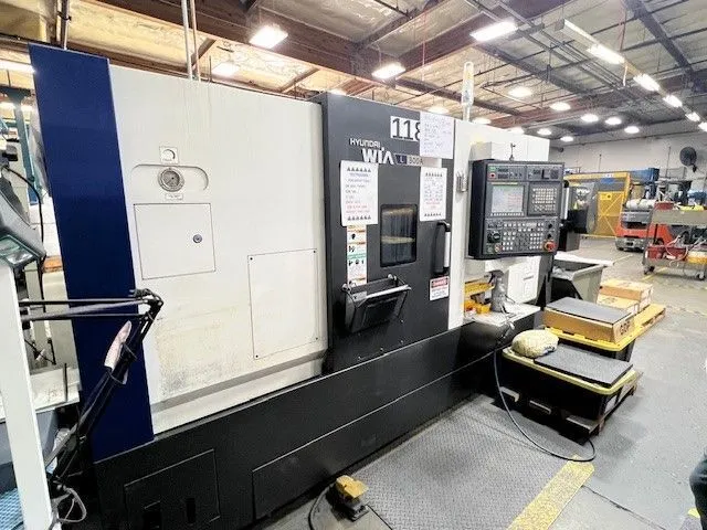 CUT HOURS 1663 - 2015 HYUNDAI WIA L300A CNC Lathe for immediate sale. Swing: 27.725", Machining Length: 28.35", 30 hp, Max RPM: 3600. Equipped with FANUC i-SERIES Control. Ideal for efficient machining with 2 axes and 12 turret positions. Must move now!